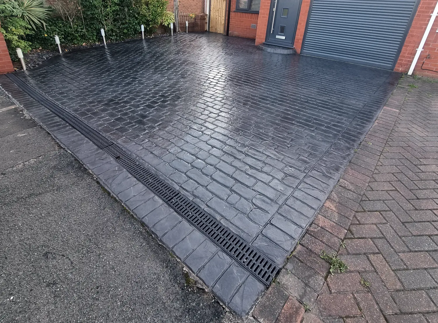 Resealed Pattern Imprinted Concrete Driveway – Classic Grey Country Cobble Style – Ashton-In-Makerfield, Lancashire